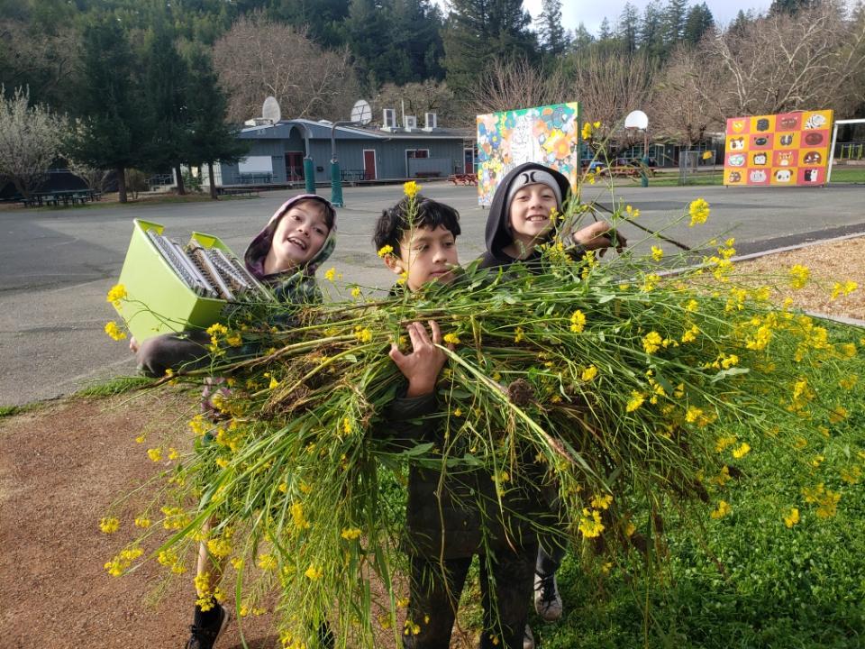 3/4/26 In the Garden And Beyond: Students have been collecting mustard from our patch at Middleton Farms. The chickens love musard! By the way, we need egg cartons and the West Side organic eggs are for sale in the office.