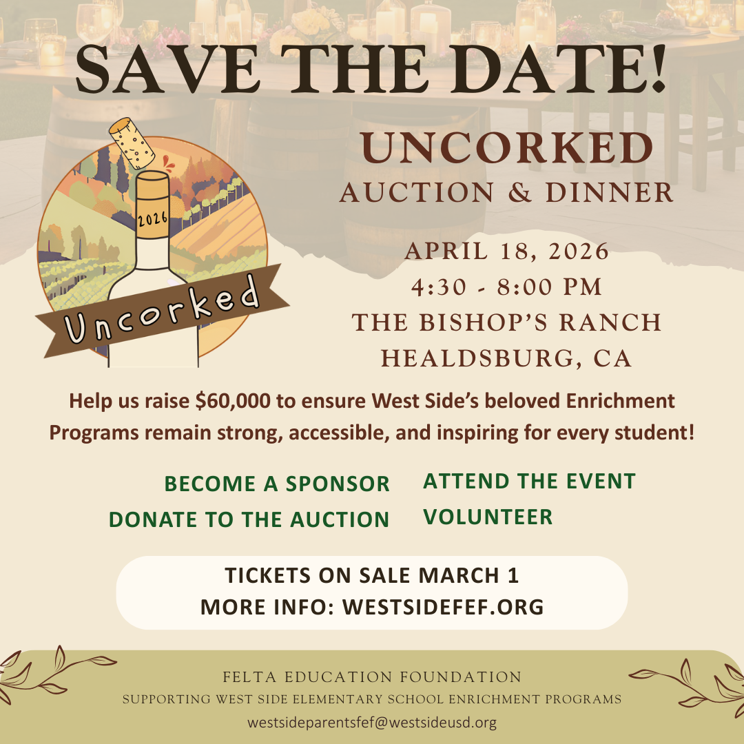 FEF March Updates Click here to read the FEF March Newsletter Click here to print a Dine & Donate Flyer Click here to learn more about Uncorked